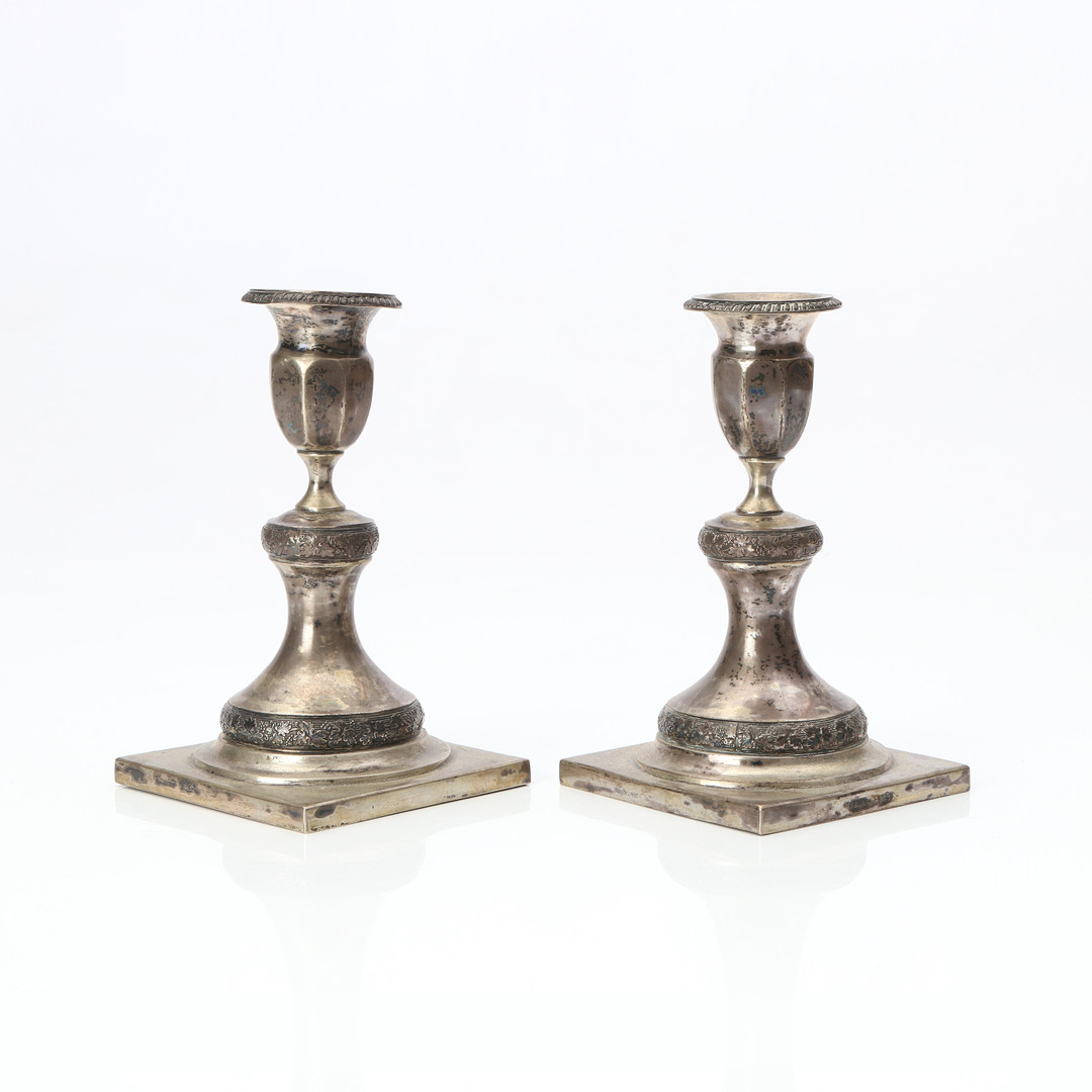 Obiekt idealnie nadający się do ambitnej kolekcji sreber z ziem Rzeczypospolitej. Para niewysokich świeczników wykonanych przez złotnika pochodzącego z Warszawy, a czynnego w Lublinie pod koniec pierwszej połowy – Józefa Suchockiego. Na podstawie załączonych zdjęć nie mamy absolutnie żadnych zastrzeżeń co do autentyczności oferowanego obiektu – w ofercie znanego nam i bardzo rzetelnego antykwariatu specjalizującego się w srebrach „Grabek w Lublinie” znajduje się cukiernica skrzynkowa wykonana w podobnym okresie przez tego samego złotnika, zdobiona identyczną roślinną bordiurą. Gorąco polecamy!